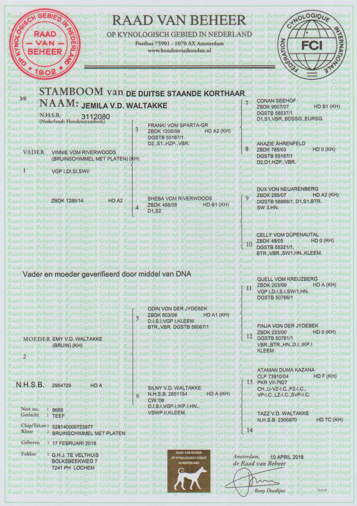 Jemila is gedekt door Hondo v.d. Stroomdrift, download het linkerbestand hieronder voor de stamboom van Jemila en download het rechterbestand hieronder voor de stamboom van Hondo.